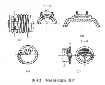 鋼絲繩尾端的固定方式:鋼絲繩在卷筒上的固定是利用壓板或楔塊將鋼絲繩壓在卷筒壁上。鋼絲繩的固定應(yīng)安全科考且便于檢查和更換。