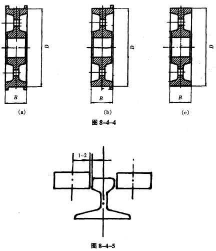 ①按葫蘆式起重機(jī)分,單或雙梁懸掛起重機(jī)或多支點(diǎn)懸掛起重機(jī)的車輪為懸掛形車輪,結(jié)構(gòu)形式同圖8-4-1所示,為借用葫蘆運(yùn)行車輪。電動單梁起重機(jī)和電動葫蘆橋式與門式起重機(jī)運(yùn)行車輪為支承形車輪,如圖8-4-4所示。